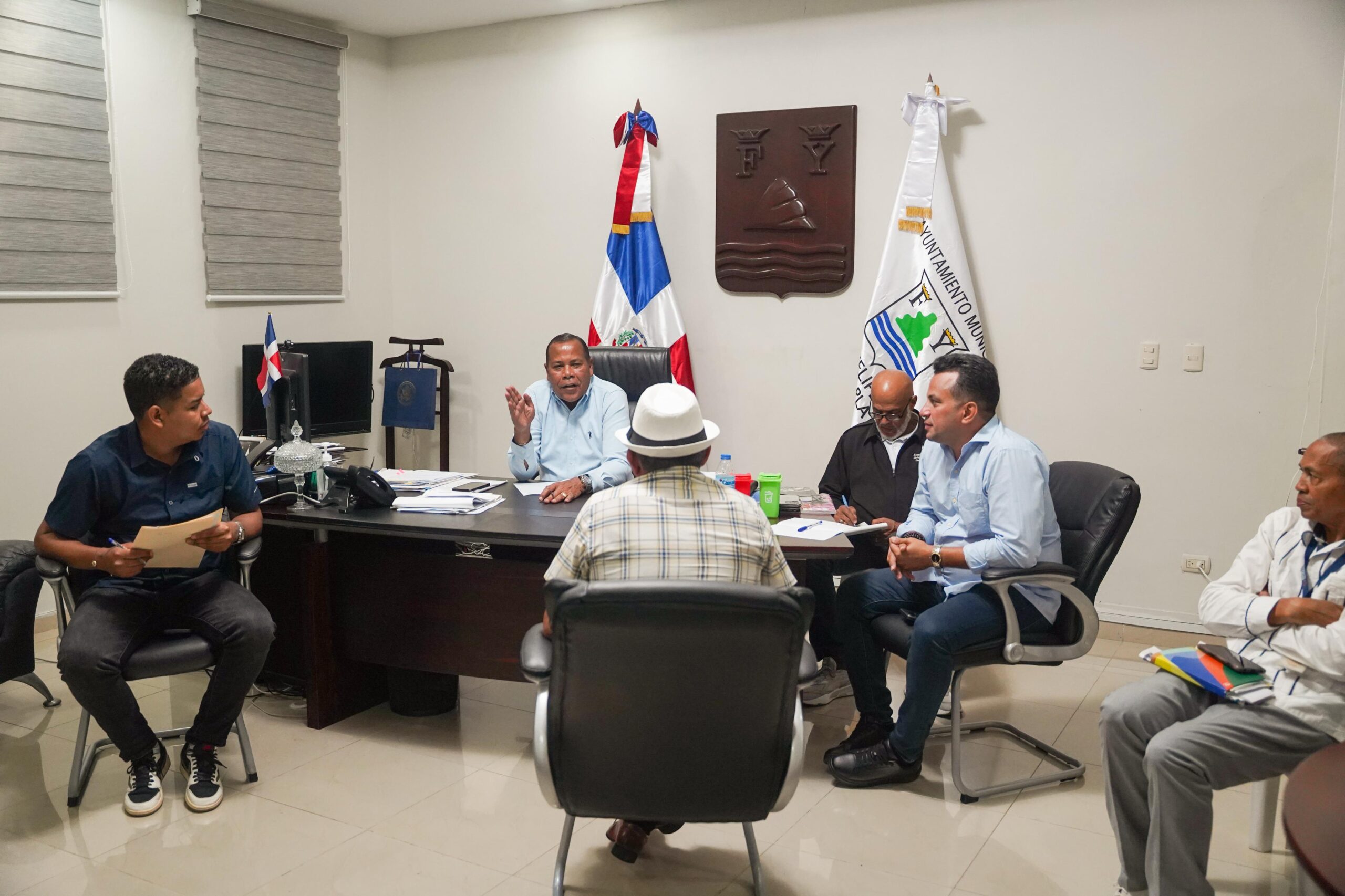 PUERTO PLATA: En la tarde de hoy, miércoles 9 de abril, el alcalde de Puerto Plata, Roquelito García, recibió en su despacho a una amplia representación del sector transporte, encabezada por el dirigente sindical Luis Bencosme, así como también miembros del sector transporte.